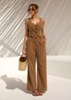 Conjunto alfaiataria em tecido sem elastano. Top estilo colete cropped com franzido nas costas e fechamento por botão na parte da frente. Não possui bojo. Calça cintura alta fechamento por zíper e botão na parte da frente. Possui forro no top.